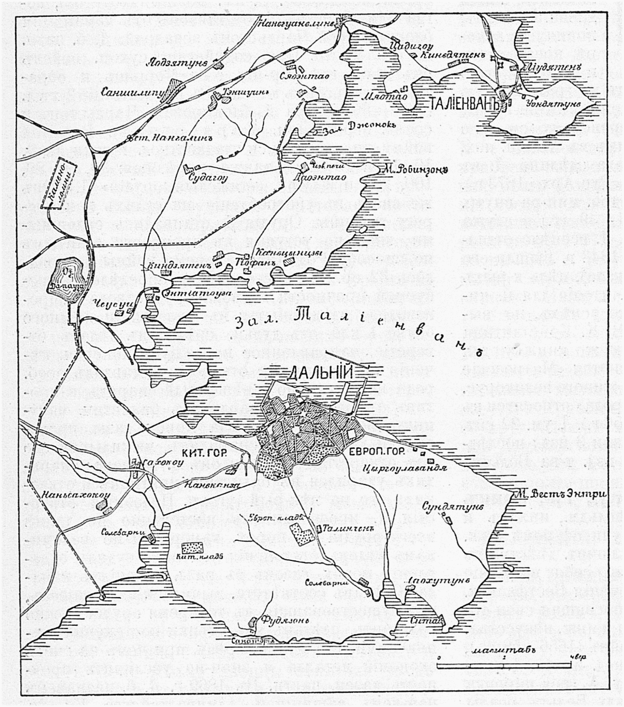 Но, после сдачи Порт-Артура, Россия потеряла не только этот город. Жертвой этого поражения стал целый проект, возникший в России после подавления в Китае восстания «боксёров». И целью этого проекта, названного Жёлтороссия, была русская колонизация Маньчжурии. И тут необходимо учитывать два момента. Китайцы сами установили историческую границу своей страны. Это пресловутая Великая Китайская Стена. Севернее неё это земли северных варваров. И в то время, официально, ханьцам севернее этой границы, именуемой тогда «ивовой изгородью», на территории которую маньчжуры считали сугубо своей, жить было запрещено. Без особого разрешения. И только со второй половины 80-х годов, из-за ослабления власти маньчжур началось заселение этих, в общем-то, пустующих земель, ханьцами. Но тогда их было не много. Всего несколько миллионов на территорию по площади близкой к площади материковой Европы. И возник проект переселения туда крестьян из перенаселённых центральных губерний. И для проведения этой политики в Маньчжурии началось строительство нескольких городов. В том числе и на Квантунском полуострове. Этот город под названием Дальний был основан русскими в 1898 году на месте китайского рыбацкого посёлка Циннива на арендованной у Китая территории. Напротив китайского города и крепости Талиенвань. И состоял Дальний из трёх частей: Административный городок, Европейский город, Китайский город. И должен был стать незамерзающим русским торговым портом.