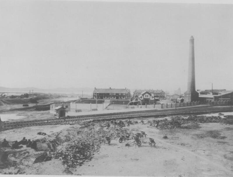 Временная железнодорожная станция. Рядом центральная электрическая станция