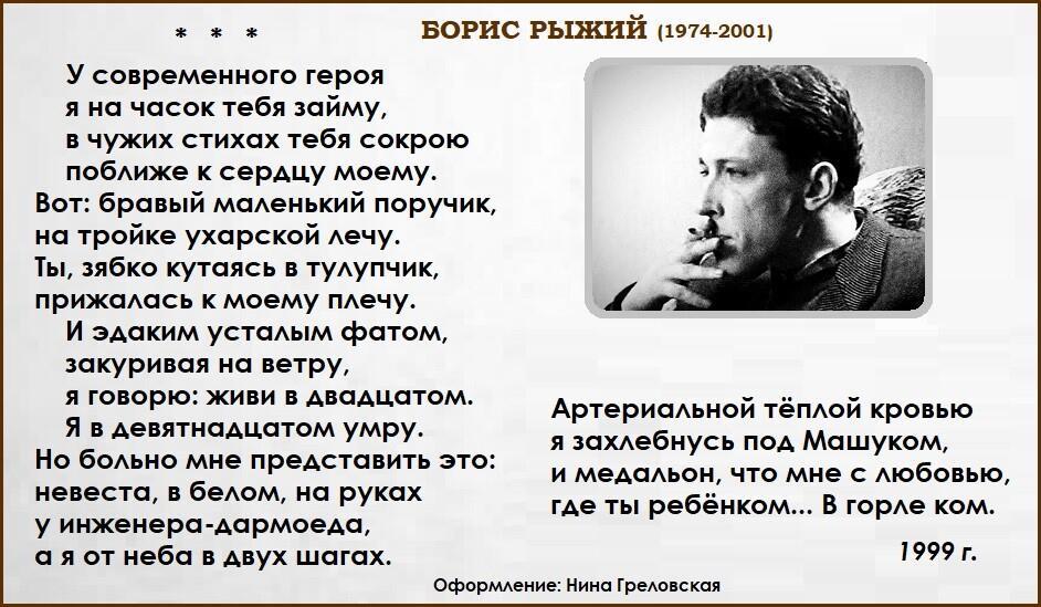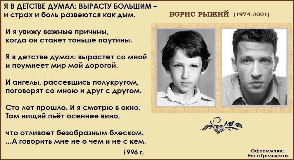 8 сентября 1974 года родился Борис Рыжий, в этом году ему исполнилось бы всего 51