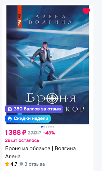 Автор: Алена ВолгинаИли доп. тираж, не знаю, как правильнее в этом случае ) В общем, поскольку первый тираж разошёлся довольно быстро, Литрес с Руграмом напечатали "Броню" в твёрдом переплёте!