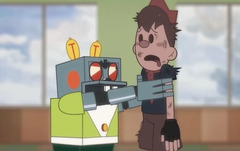 В поле зрения майора показался двухметровый гуманоидный робот прямоугольного вида, напоминавший зайца. Вместо ушей и хвоста — желтые длинные лампочки. Визоры сверкали ярким красным светом. А огромная пасть с двумя передними выпирающими зубами была готова зажевать любого на своем пути.
