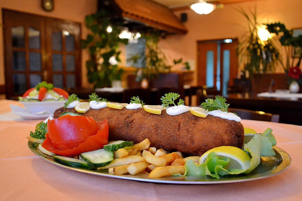 Это мой фаворит. Технически, это свиной шницель, только не плоский, а свернутый в трубочку и с начинкой на основе каймака и пршута. Полученный рулет макают в яйцо, потом в панировку и жарят, получается своего рода гибрид шницеля и котлеты по-киевски. В отличие от прочих блюд, имеет автора и время создания — повар ресторана «Голф» Милован Стоянович придумал его в 1956 году.