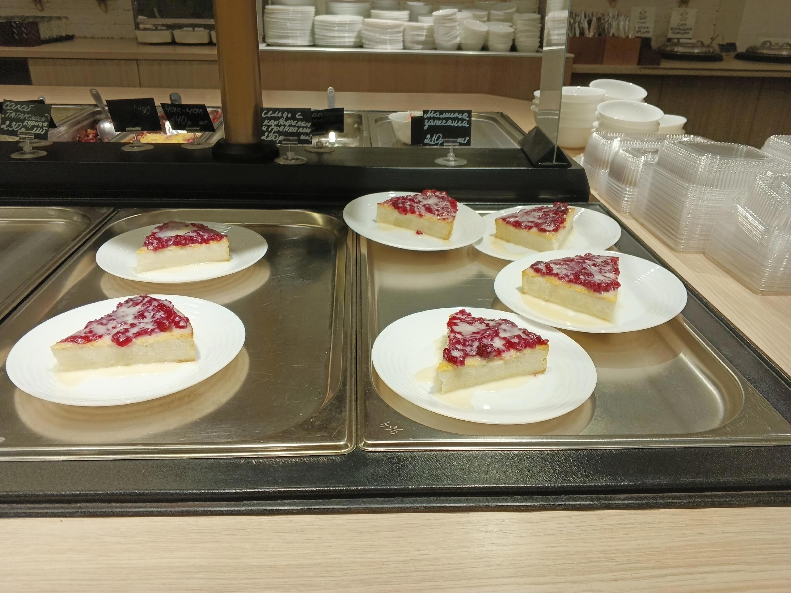 А чуть дальше витрины с запеканками, сладкими десертами и чайно-кофейный уголок. Цены вполне демократичные. Даже чуть ниже чем в большинстве кафе.