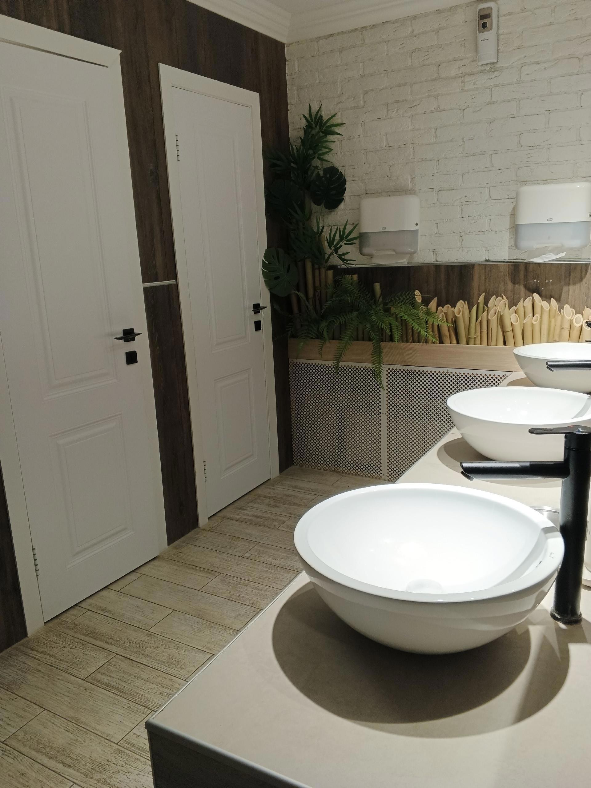 Имеется хорошая туалетная комната, что совершенно немаловажно. Оформлена она тоже очень хорошо. Кабинок много, вода горячая и холодная, полотенца, мыло и другие гигиенические аксессуары имеются в достаточном количестве.