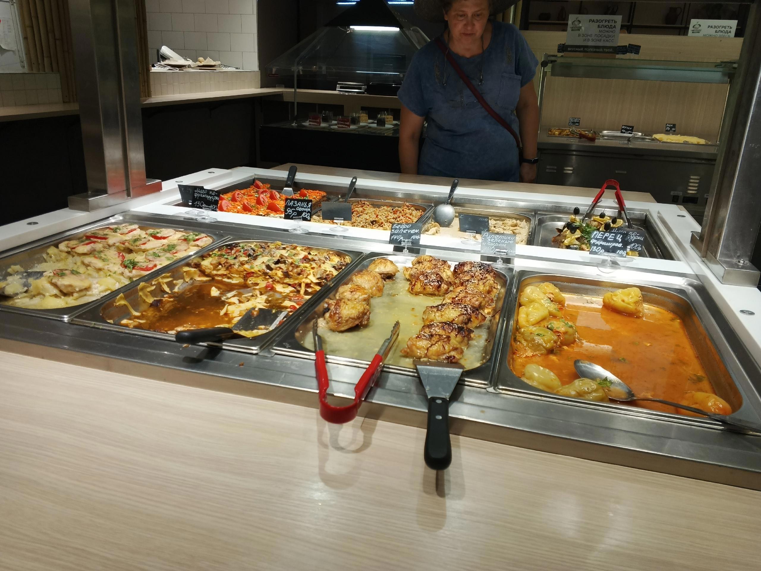 Вторые блюда тоже хороши. Разглядывая витрину реально хочется попробовать всё. К слову сказать, зашли мы сюда как раз после основного обеденного времени, так что, часть блюд ещё не возобновили.