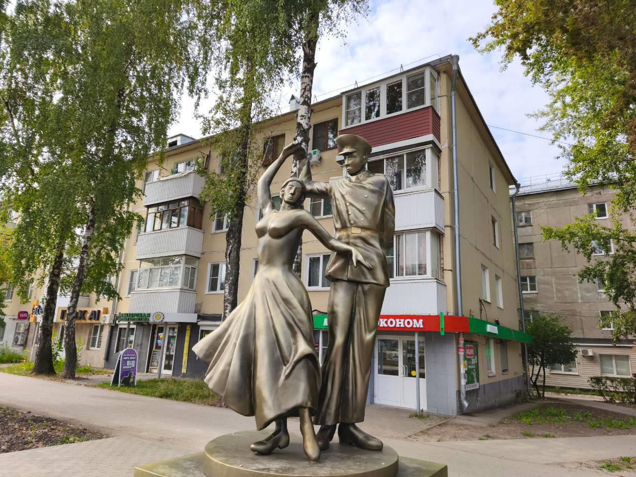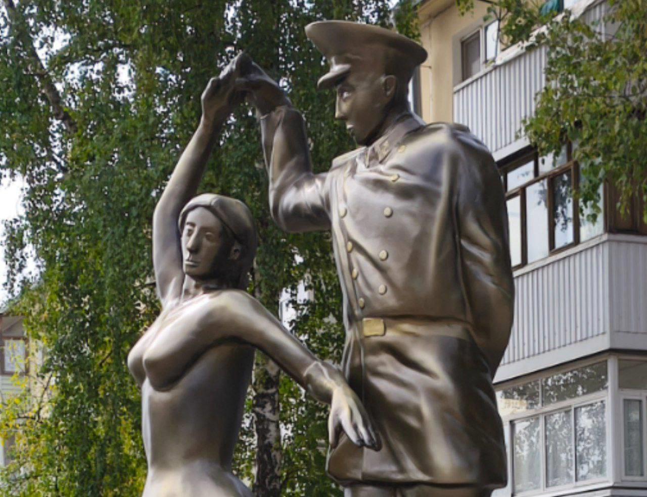 Просто это первое, что приходит на ум, когда смотришь на новую скульптуру "Молодой нахимовец с девушкой", недавно установленную в Рязани, на перекрёстке улиц Гагарина и Черновицкой.