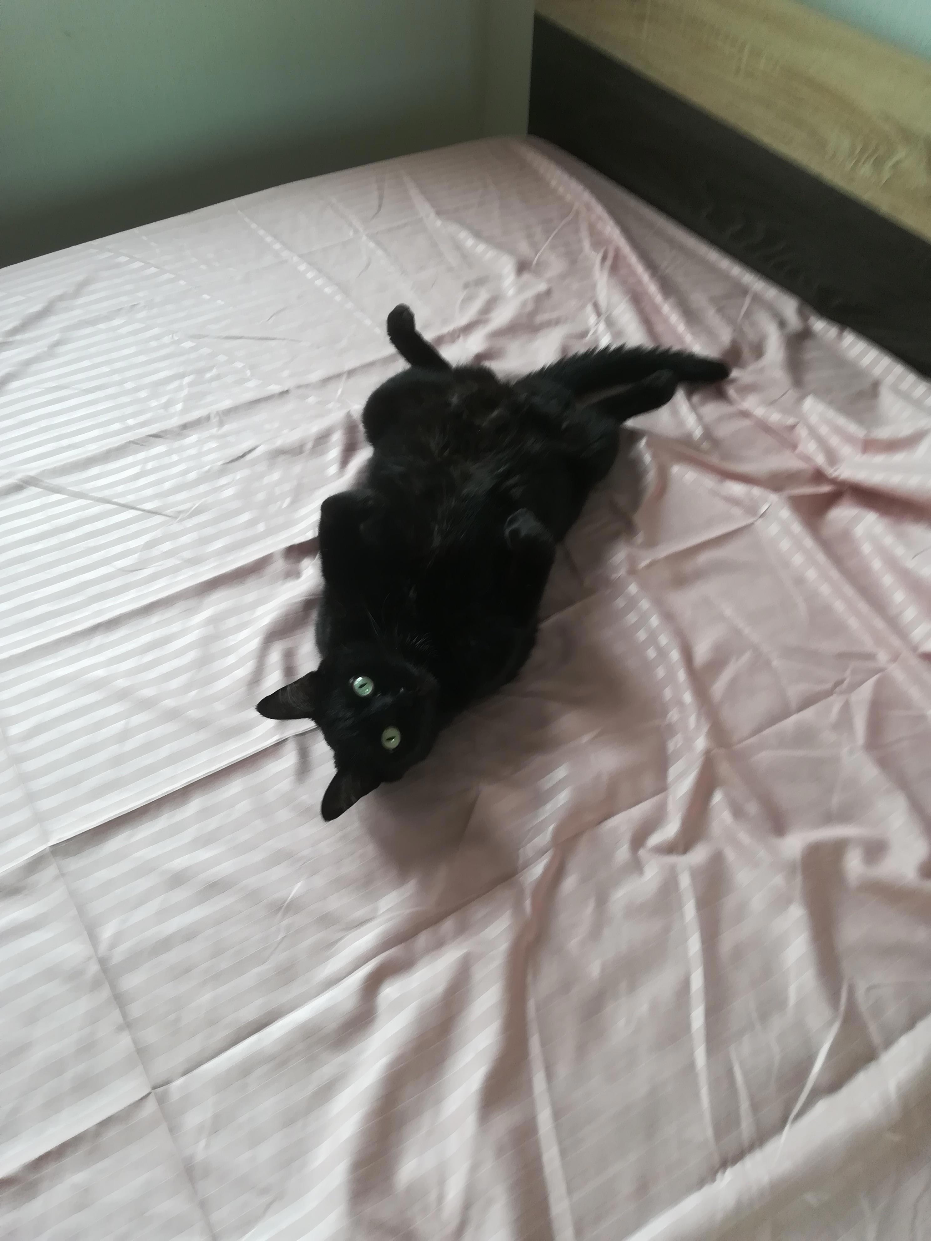 Из прекрасного: вот она, чистую постельку мама постелила для коти, конечно же.