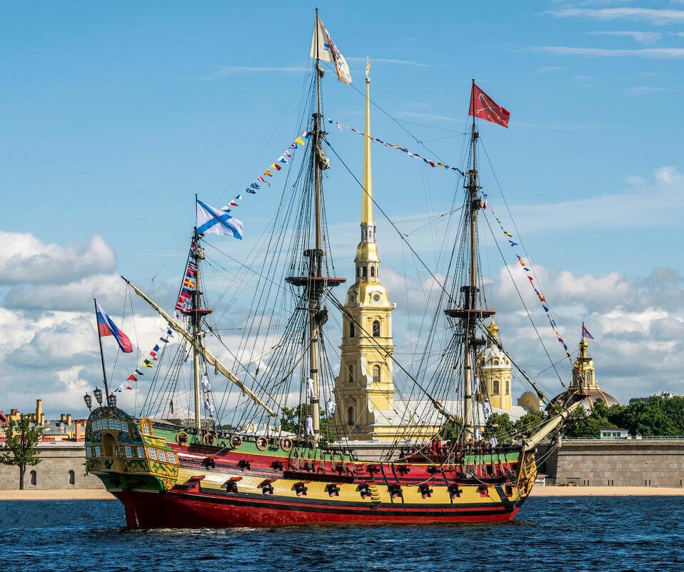 Двухмачтовый бриг «Россия» был модернизирован в 2019 году на Средне-Невском судостроительном заводе специально для праздника выпускников «Алые паруса».
