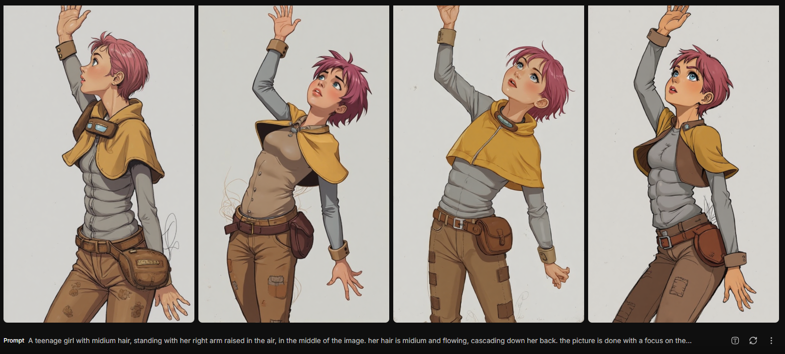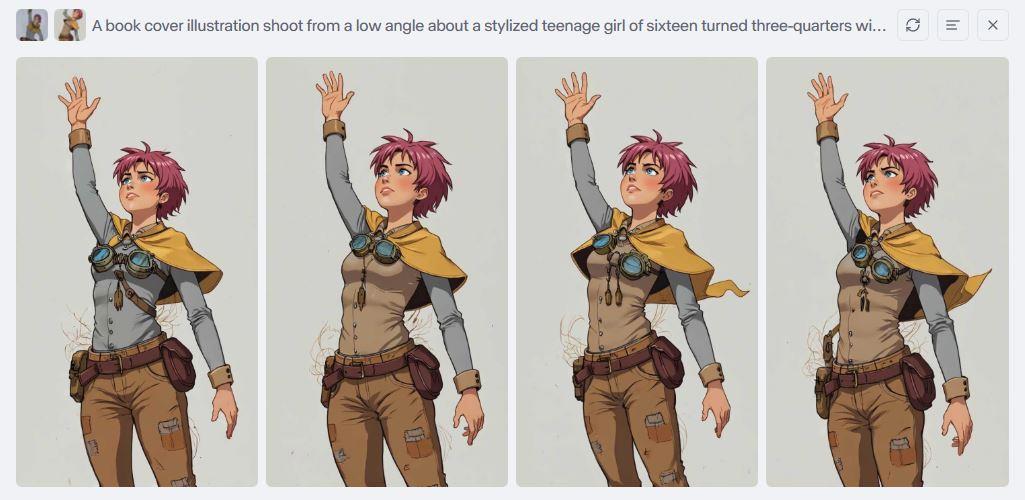 По сюжету, во второй книге Санни слегка подросла и должна была выглядеть решительнее. Runway с первого раза помог создать новое изображение на основе загруженного старого, оставив прежней фигуру и даже пропорции тела! Скрин внизу.