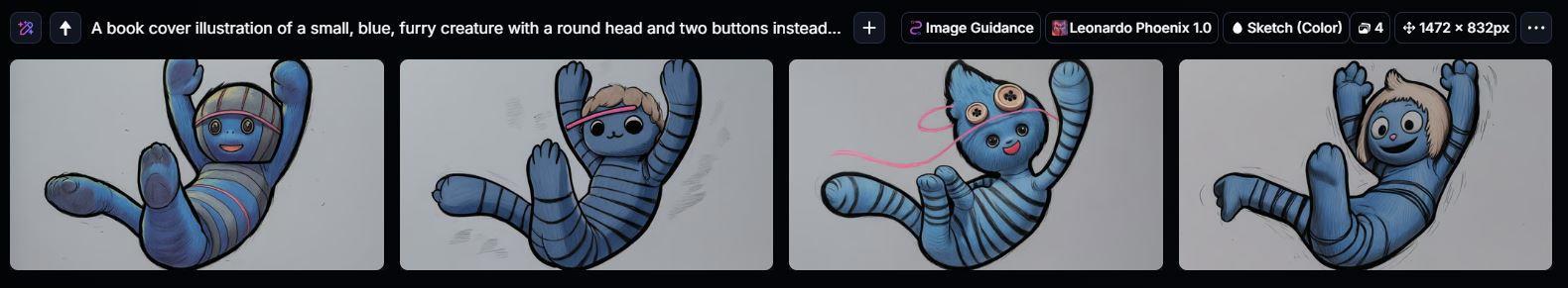 Что же касается заднего фона, то с ним получилось больше всего возни. Нейронка все время пыталась уйти в реализм и никак не хотела задавать стилистику, как у книжной обложки. Для бэка я использовал исключительно Leonardo, поскольку он со своими 150 кредитами в день может навалить массу контента и вписывается стилистику.