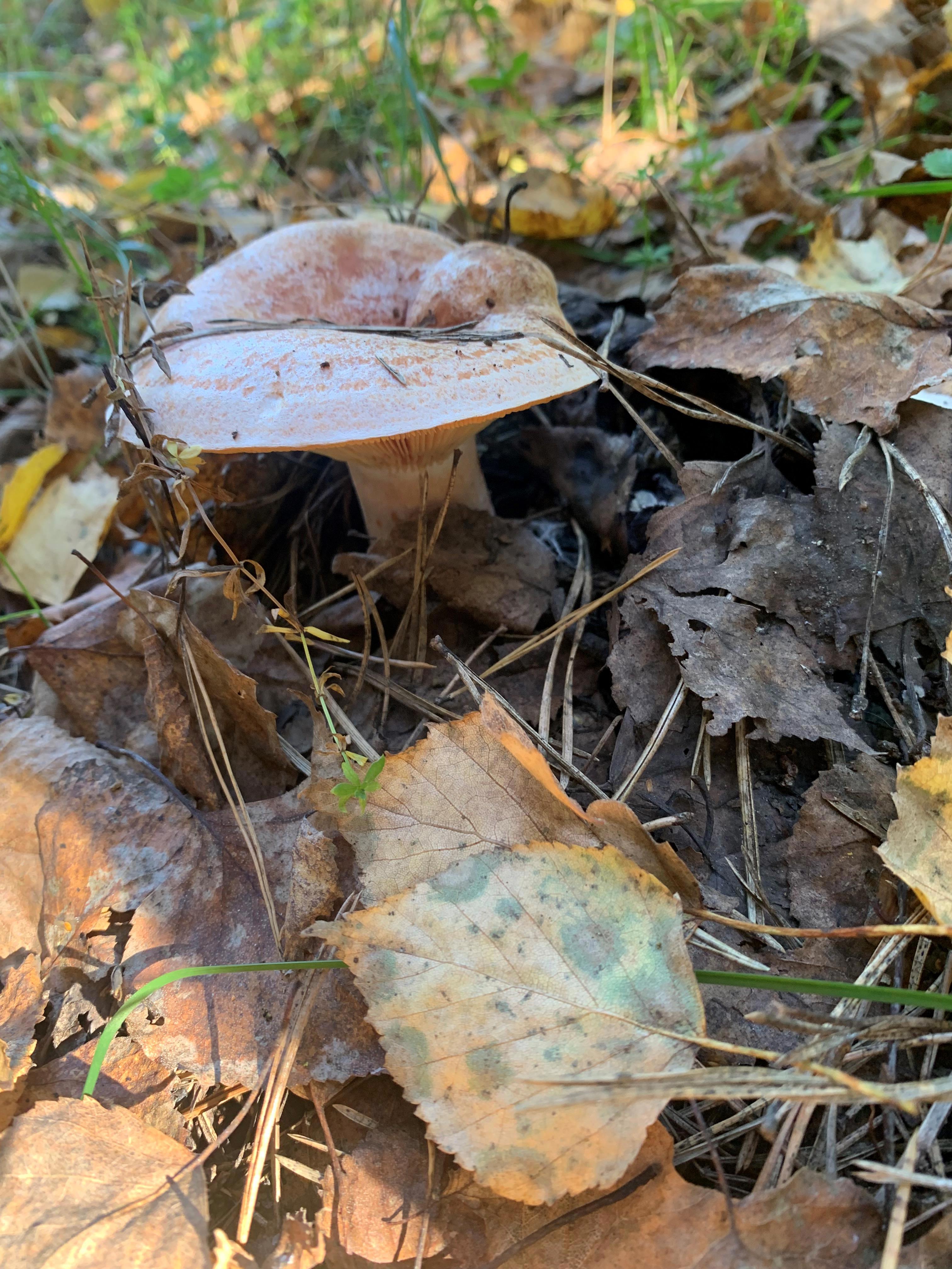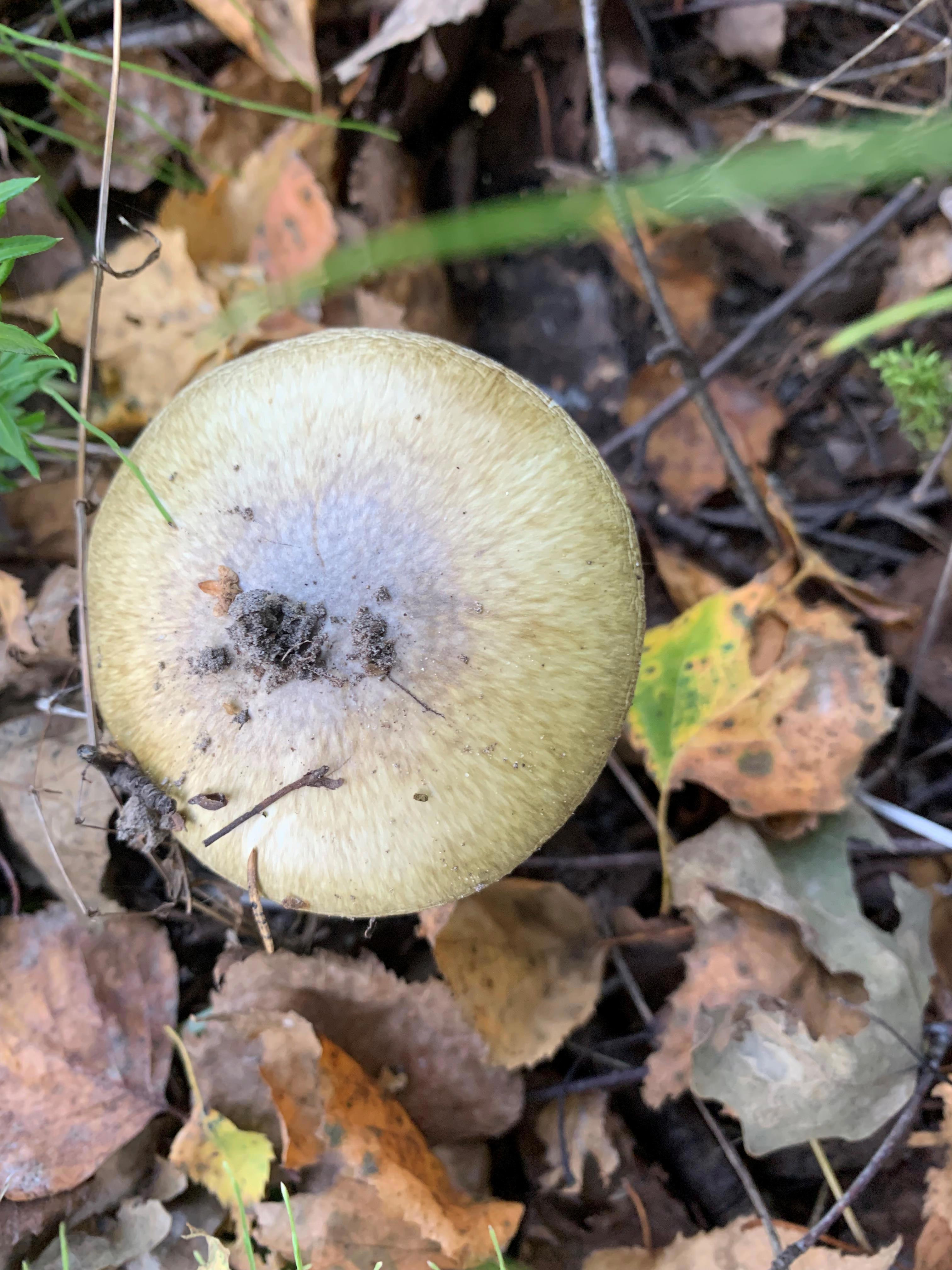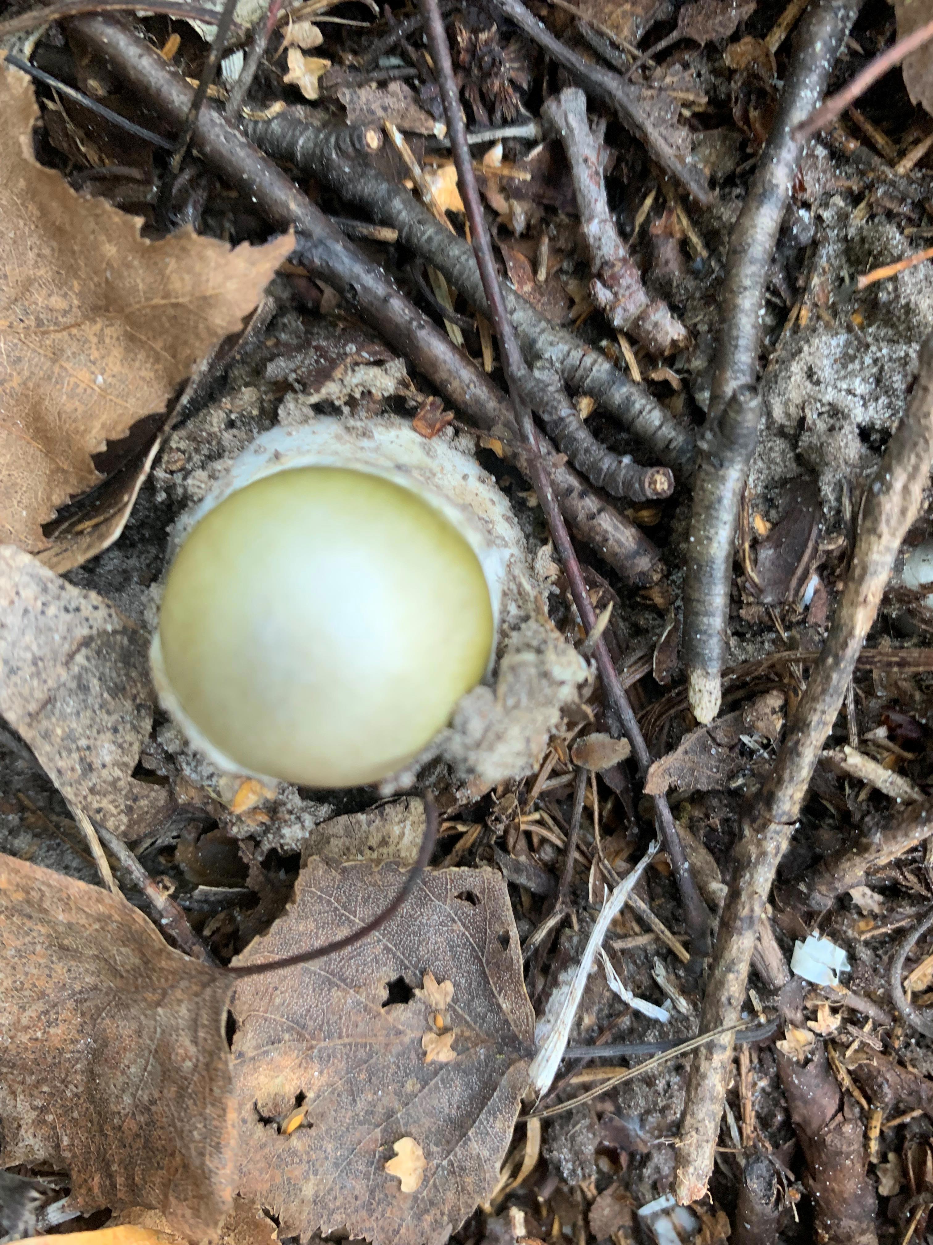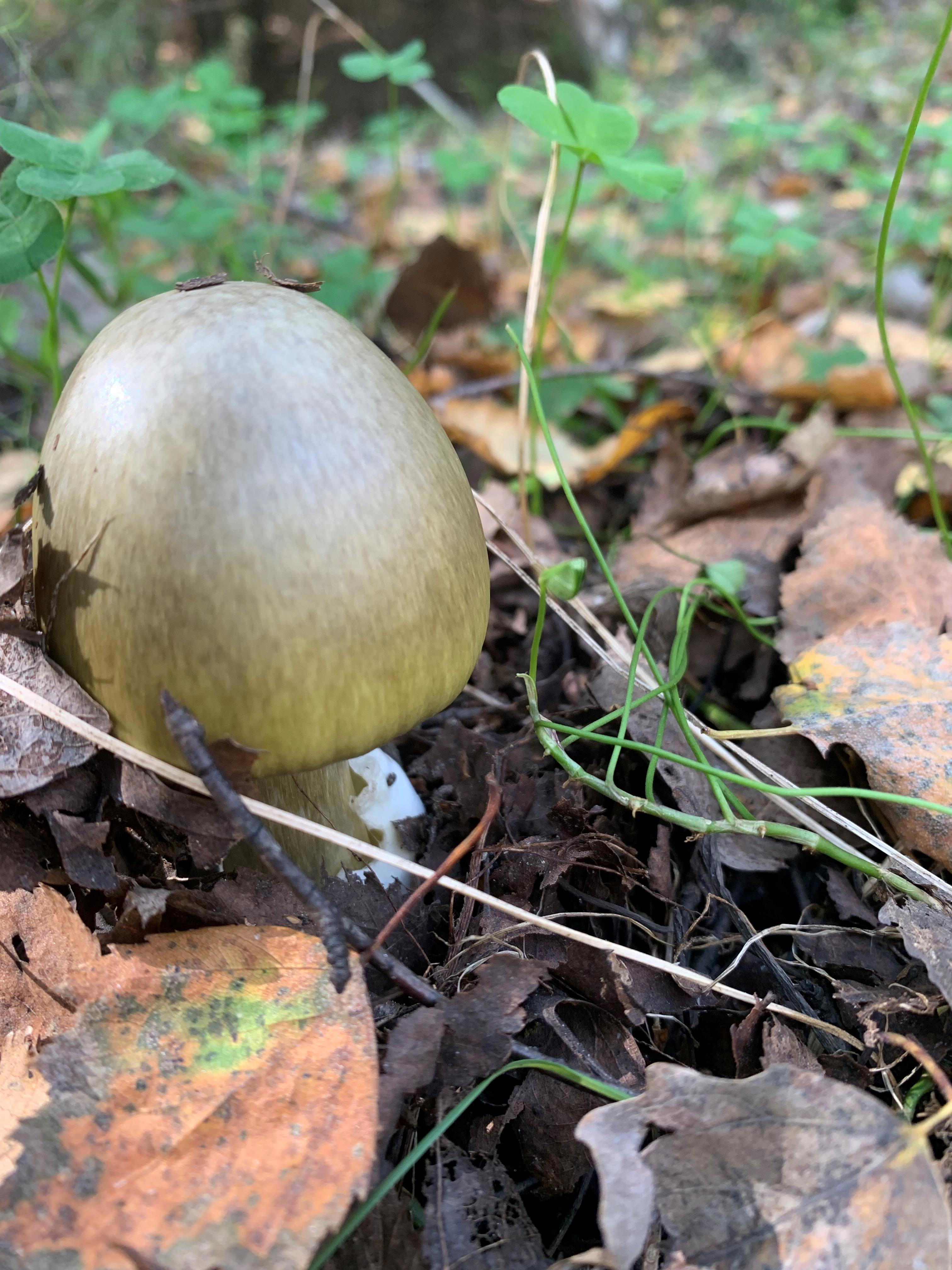 Они вылупляются как чужой из яйца, даже жутенько. Это называется "вольва" и она сохраняется и у взрослых грибов. Ну, и абсолютно белые, будто фарфоровые пластинки.