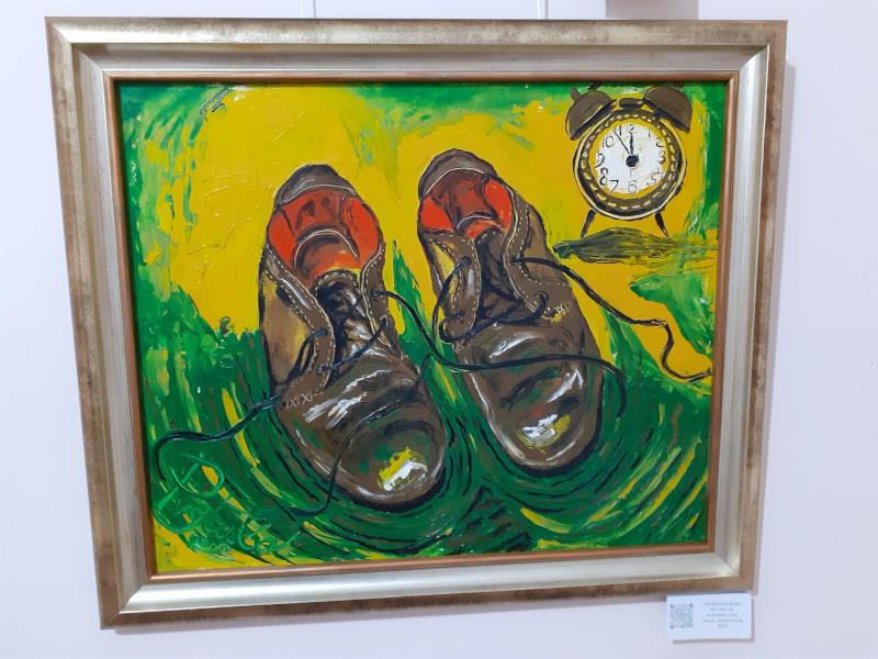 Здесь та же проблема, нет понимания композиции, часы впендюрились в потолок, и по какому принципу подбираются цвета? Такое впечатление, что это просто краски из тюбиков, не смешанные на палитре и взятые от балды. Явное безвкусное холстомарательство. Так мало того, там помимо имени художника был указан стиль, названный в его честь. Представляете? Оказывается, это не бездарность, а просто стиль такой! Не умеете рисовать? Измажьте кучу холстов и назовите это в свою честь! Дальше воспользуйтесь связями и деньгами чтобы вам организовали выставку. Вуаля! Вы художник! Хоспаде, Ложкин тоже не умеет рисовать, но он в этом честно признается и в его работах есть хоть какая-то претензия на концептуальность.