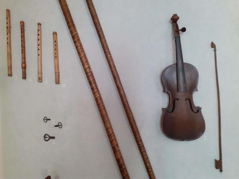 Музыкальные инструменты: дудочки, скрипочка и губные гармошки (варганы), а что за палки я хз.
