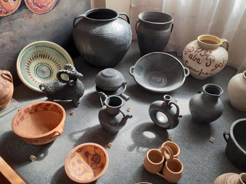 Много украинских национальных костюмов, посуды, изделий из дерева и макетов церквей, которые практически невозможно сфоткать потому что они расположены прямо перед окнами против света (все фотки засвечены, жесть).