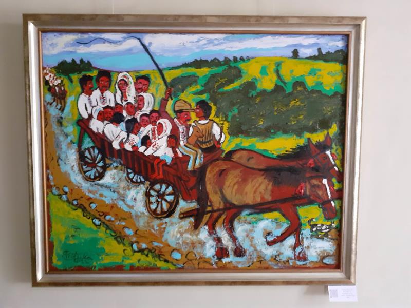 Ну реально, ребята, это ведь жесть натуральная. Я как только увидела данные художества сразу так и подумала, что человек нифига не художник, а потом работница музея подтвердила мою догадку. По представленным на выставке работам весьма заметно, что он не понимает что творит и дело тут вовсе не в том, что современное искусство деградирует бла-бла-бла. Оно не деградирует, а просто давно уже отступилось от объективизма в сторону выражения чувств, мыслей, состояний, но при этом художники знают что делают, они работают в соответствии с законами изобразительного искусства. Здесь же мы можем наблюдать полное отсутствие понимания живописи вообще. Одно только расположение повозки с лошадьми на холсте красноречиво это показывает (человек не имеет понятия о композиции и о том, что объекты надо размещать, а не лепить как-нибудь). Сразу заметно, что на художника он не учился и просто марает холсты.