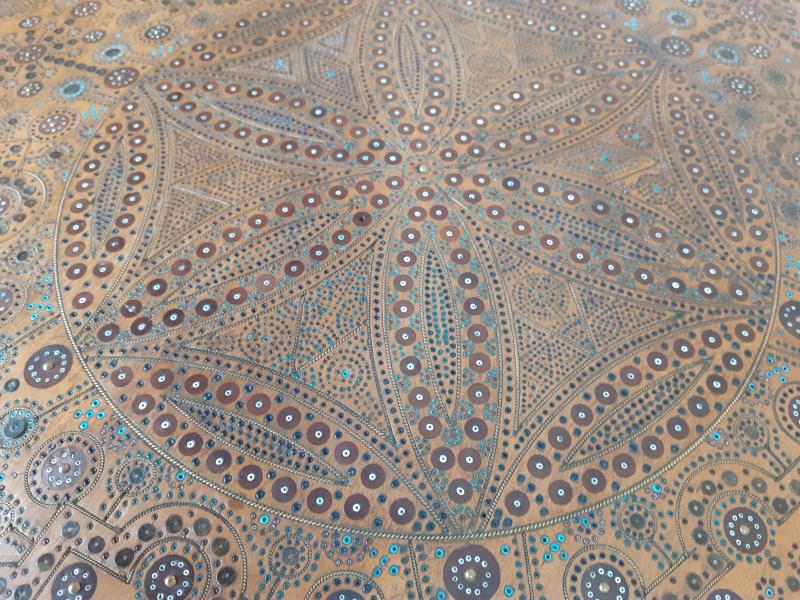 А вот и пример упоротости древних людей. Это стол, инкрустированный бисером, крупным планом. Представляете, сколько времени угробили на его создание?