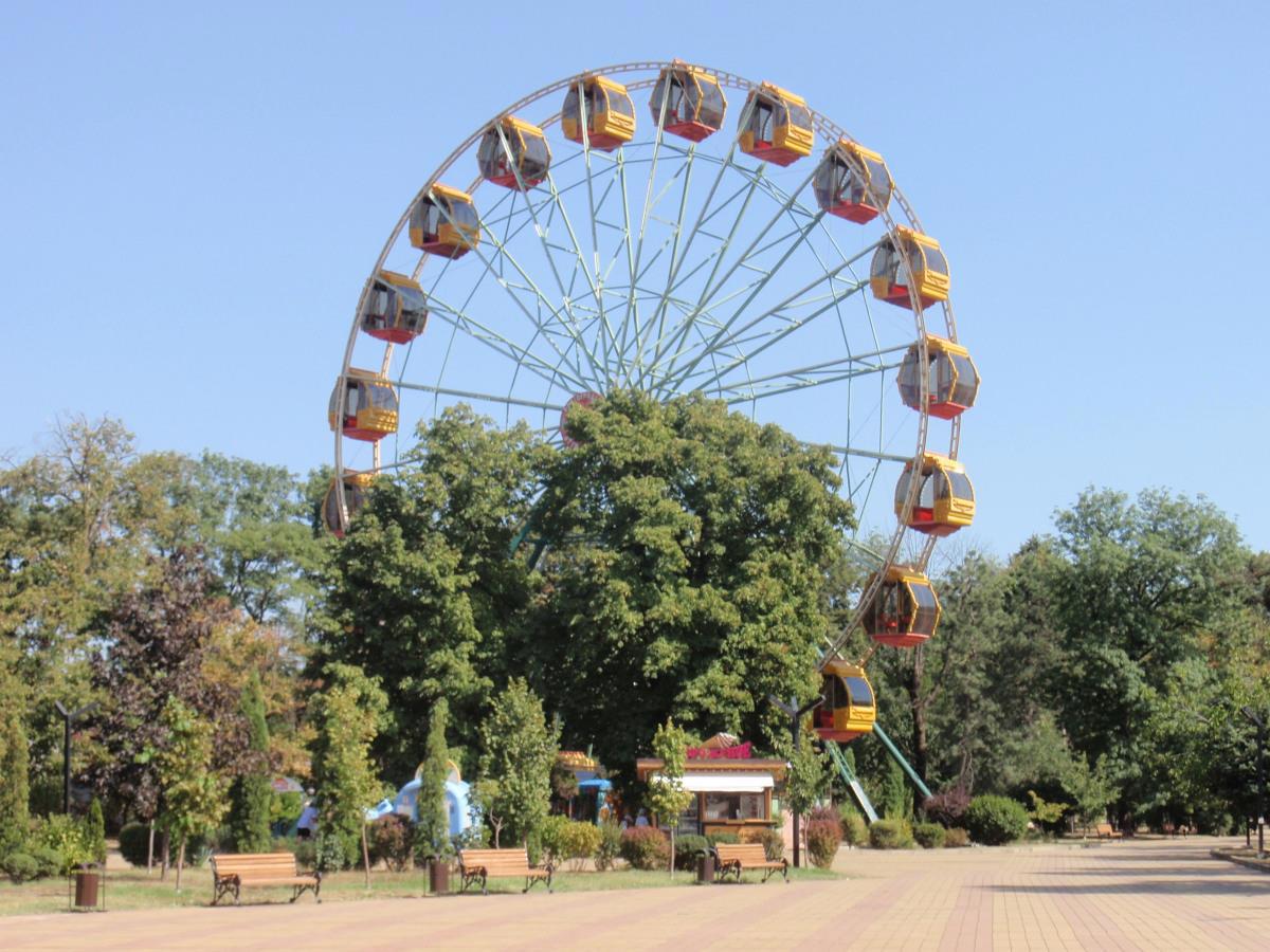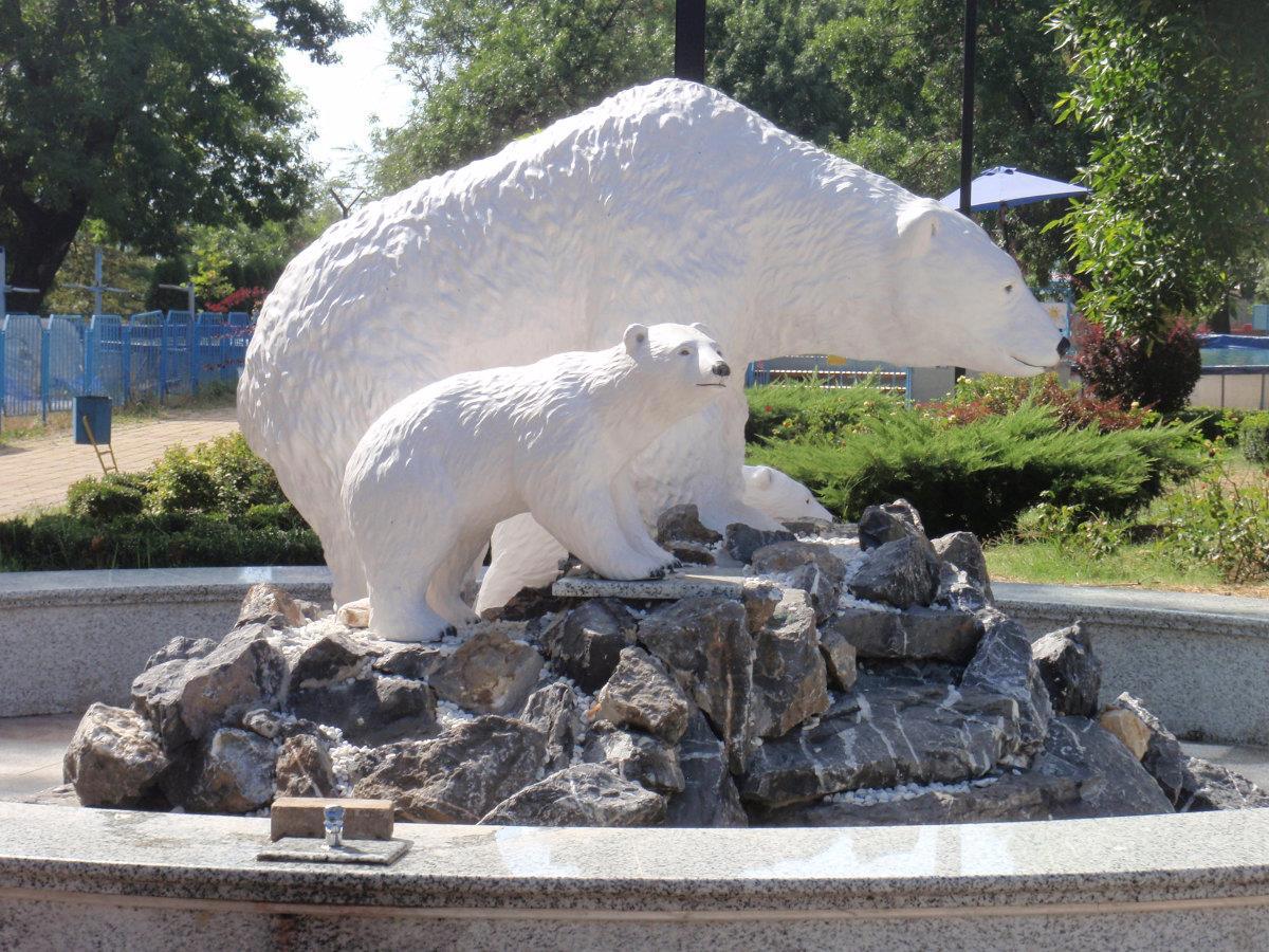 Потом мы немного погуляли и прокатились на колесе обозрения в парке. Очень мне понравился фонтан с медведями, из которого можно набирать воду – есть два краника.