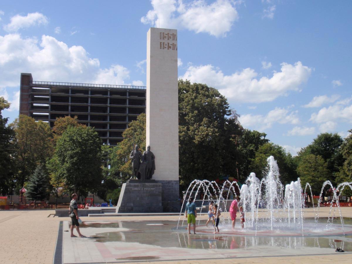 Как правило, я равнодушна к культовым зданиям, но для картинки – Майкопская Соборная мечеть (Джума-мечеть), одна из самых известных мечетей Кавказа. Она выстроена в 2000 году на средства шейха Арабских Эмиратов Халида Бин Сакр-аль-Кассими, наследного принца княжества Рас-аль-Хайм, по просьбе его матери-черкешенки. Мечеть могут посещать и приверженцы других конфессий. В ней также находится Духовное управление мусульман Республики Адыгея и Краснодарского края и, кажется, медресе.Возле мечети уютный парк с памятником Дружбы народов и фонтаном, в котором играет детвора. В парке мне глянулись занятные арт-решения – многогранники с национальными узорами и картой Адыгеи, и всякие мудрые изречения, написанные на адыгском и русском языках. Тут же монумент "Навеки с Россией", а недалеко площадь Единения и Согласия, и, собственно, одноимённый 20-метровый монумент в виде башни, посвящённый погибшим в годы Кавказской войны. Монумент открыт в 2003 году, его украшают барельефы со знаковыми элементами адыгской культуры и отсылками к истории края.