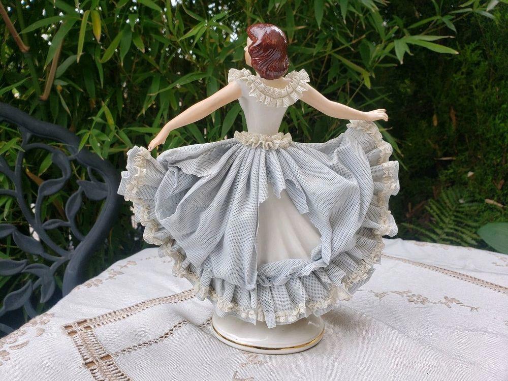 Создание фарфоровых кружев — процесс очень сложный и требует от скульптора высочайшего мастерства. Процесс, как полагают, был разработан еще в Древнем Китае, где использовали шелк-сырец. Тем не менее, самым известным примером является Дрезденский фарфор. В начале 18 века в городе Дрезден был открыт секрет изготовления этого белоснежного, хрупкого, изящного материала, а уже в конце века производство фарфоровых статуэток стало массовым. Но из-за несовершенства изготовления (недостаточно высокая температура обжига) тонкие кружева были довольно хрупкие и ломались от малейшего прикосновения. Вот почему кружевного фарфора того времени так мало, и стоит он так дорого, почти у каждой статуэтки есть «сколы» — пострадавшие от времени и механических воздействий кружевные наряды.
