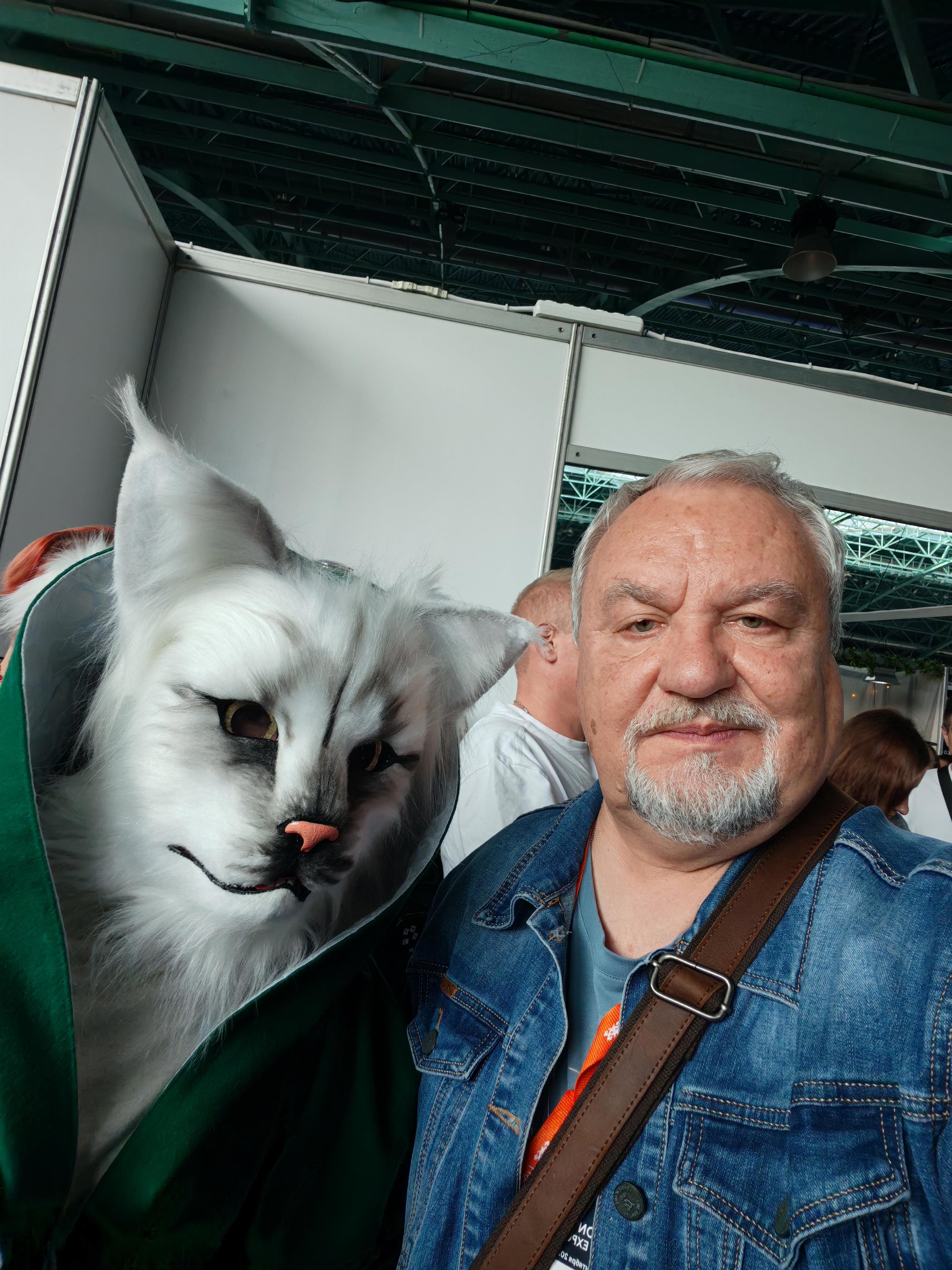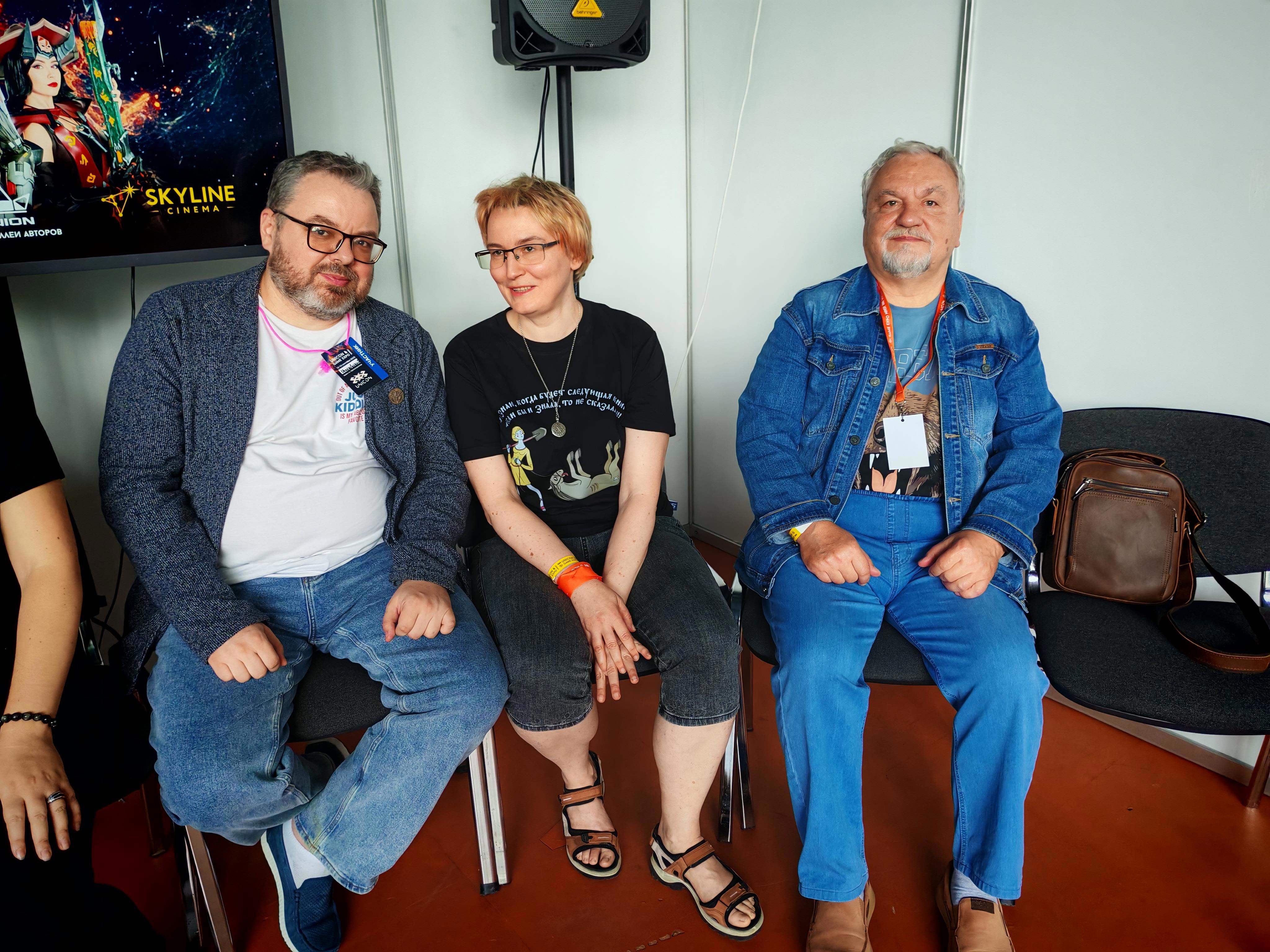 На фото я, Ольга Громыко и Алексей Свадковский. Ну, и с я с косплейщицей. Не мог удержаться не сфотографироваться с такой милотой.