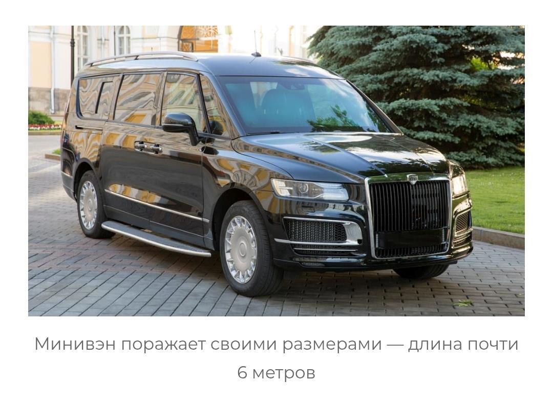 - Минивэн достигает 5980 миллиметров в длину, 2020 миллиметров в ширину и 2090 миллиметров в высоту при колёсной базе 3550 миллиметров. Гражданскую версию модели в самом Aurus называют «VIP-кабинетом», который оборудован двумя пассажирскими сиденьями с «максимальным уровнем комфорта и количеством настроек» и дополнительными выдвижными сиденьями формата визави, расположенными против хода автомобиля.