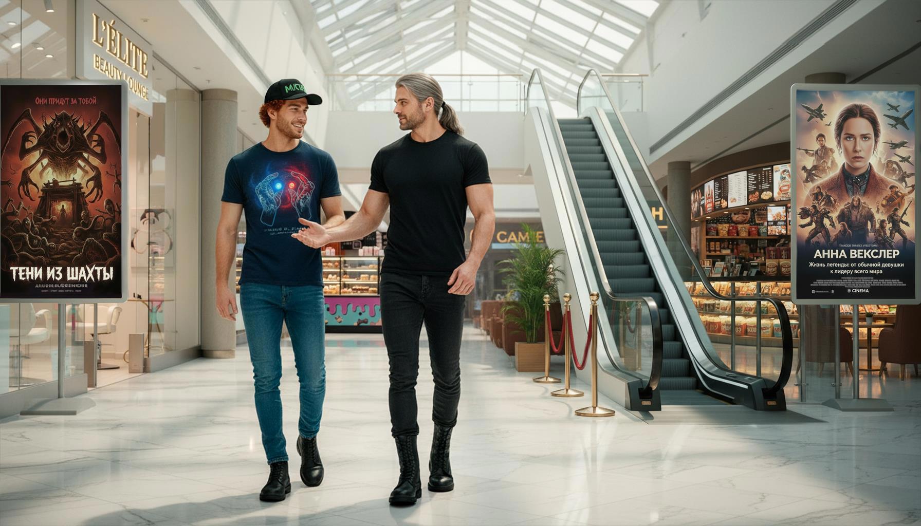 5) Кайл и Марк в ТЦ перед кино (максимально подробное повторение образа из книги + афиши):