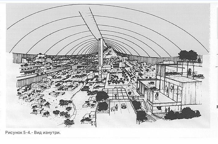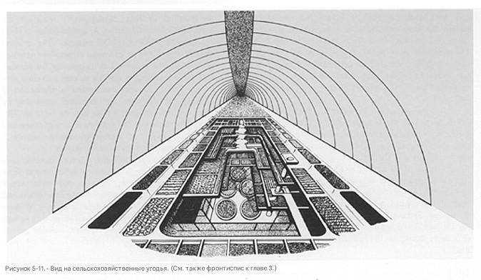 Жилые зоны: Внутреннее пространство тора предназначено для создания искусственной экосистемы с парками, сельским хозяйством и жилыми кварталами.