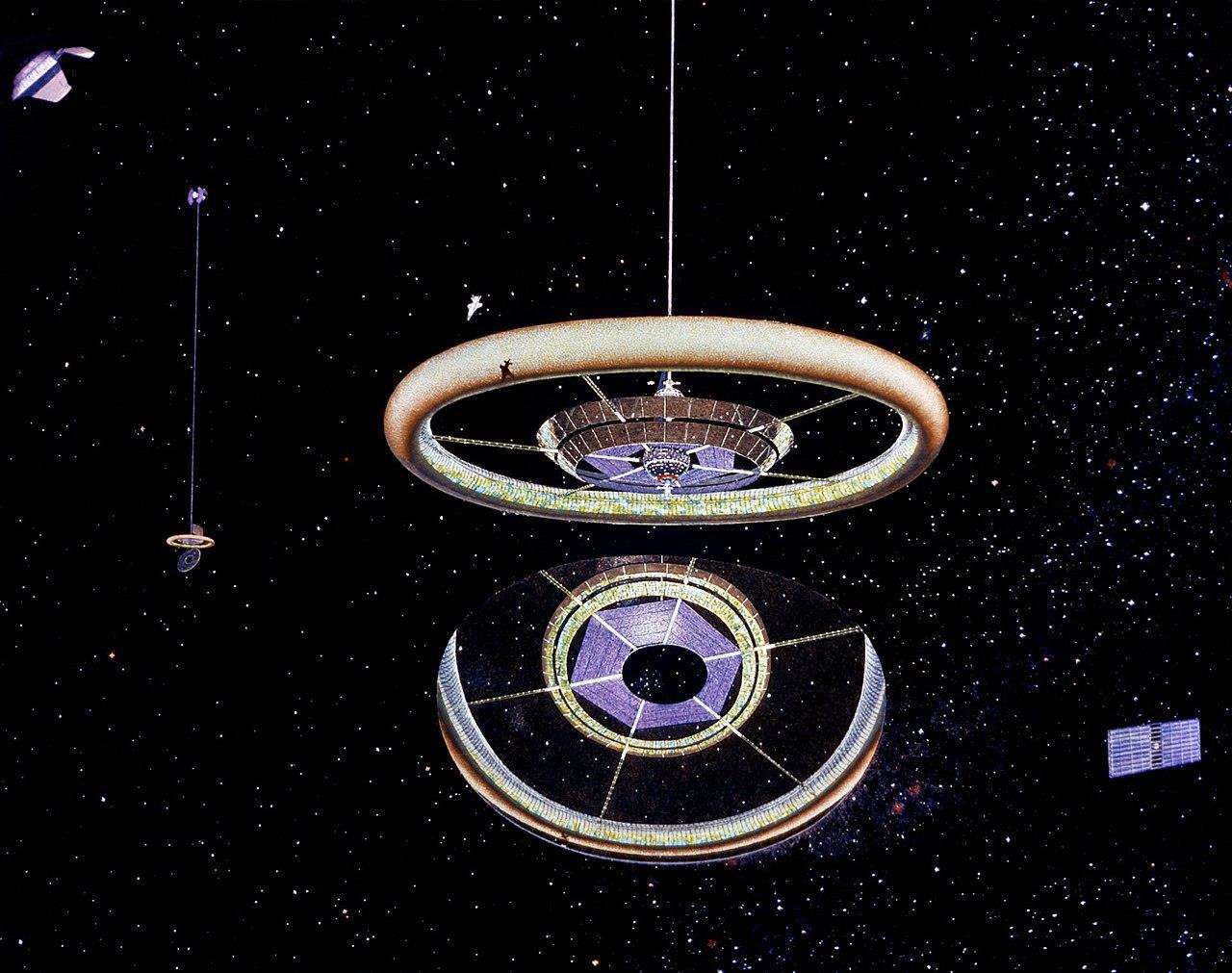 Автор: Николай ЮрчиковСтэнфордский тор - проект вращающейся кольцевой космической станции диаметром около 1,8 км, предложенный в 1970-х годах специалистами Стэнфордского университета. Для создания искусственной гравитации тор вращается со скоростью 1 оборот в минуту, имитируя земные условия для проживания людей в жилых зонах, напоминающих долины, обеспеченных солнечным светом с помощью системы зеркал. В центре станции расположена неподвижная ступица, служащая стыковочным узлом для космических кораблей.