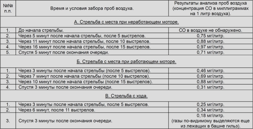 Но может немцы были не одиноки, а такое явление - интернационально? Взглянем на отечественную тридцатьчетвёрку. У неё, конечно, пороховой заряд сильно жиже - всего 1,08 кг (заодно у наших Ф-34 выше ресурс ствола в четыре раза)), но жалобы на загазованность тоже есть. Воспользуемся отчётом о полигонных испытаниях Т-34 с Л-11 - там правда заряд пороха ещё чуть ниже из-за низкой баллистики, где-то процентов на 10, судя по дульной энергии.