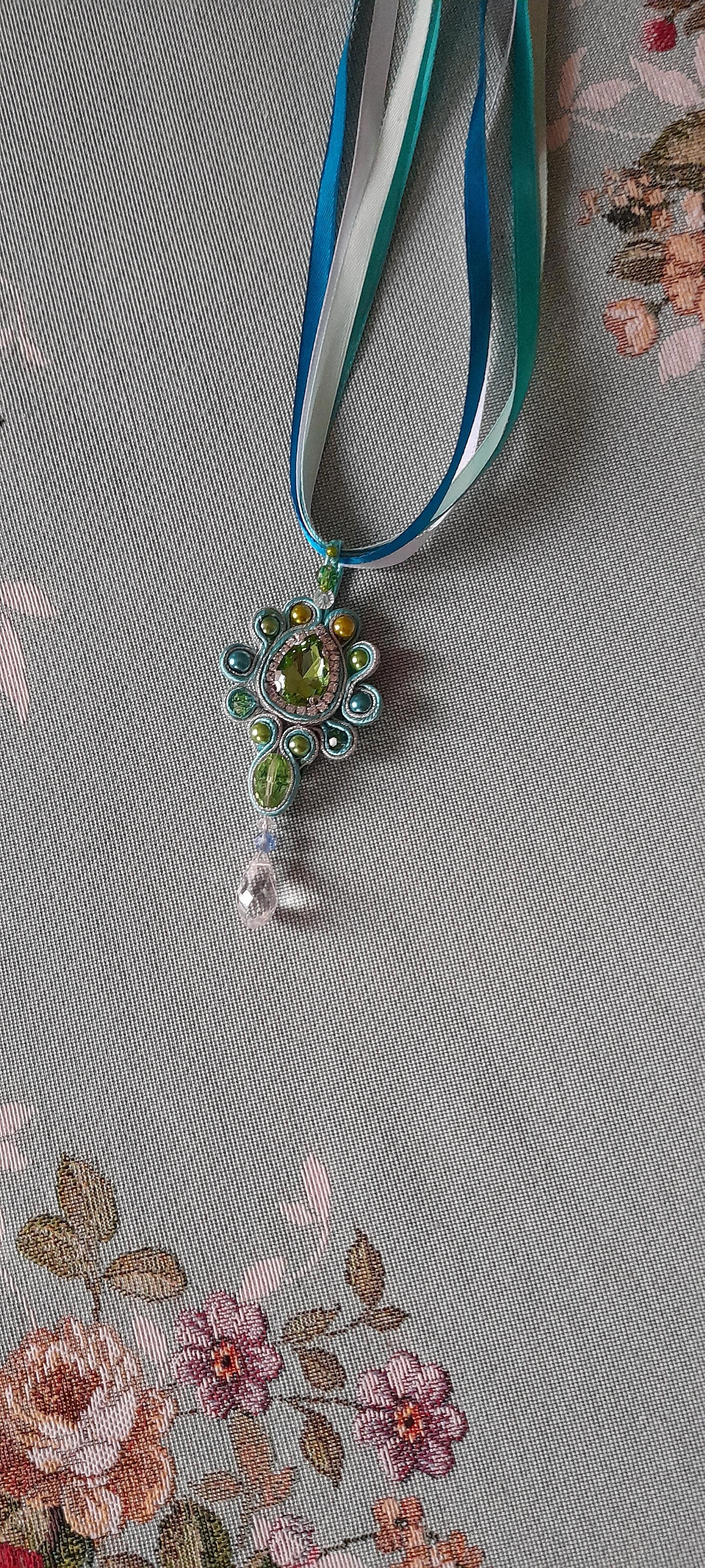 Симпатичная кофточка нашлась быстро, а вот бижутерия не устраивала, ну вот не нравилось ничего, пришлось вспоминать навыки работы с сутажным шнуром и бусинами. Вот что из этого получилось: