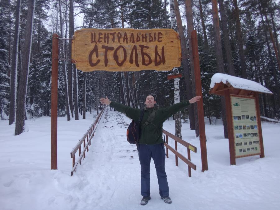 Валерий Иванченко из «Книжного обозрения» просил передать привет Красноярским столбам… На этом фото я с удовольствием выполняю его просьбу: