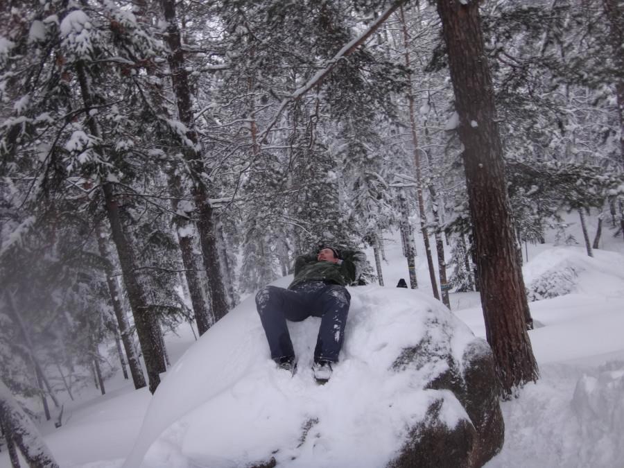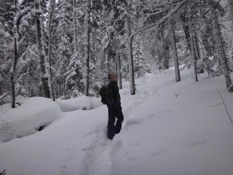 Но полно созерцать фирменные видовки. Пора снова в путь… Как бы ни было потно и трудно, но это охренительное ощущение — первым двигаться по нетронутому глубокому снегу.