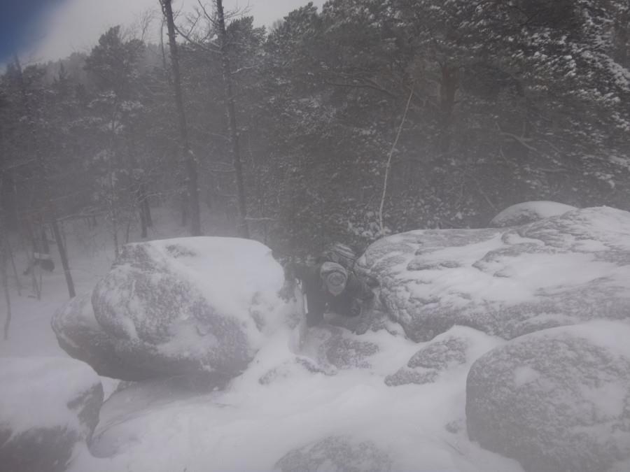 Плюс на самом верху еще сильно метёт, прямо в рожу снегом дует. По-моему, камера хорошо передает суетящийся в воздухе снег: