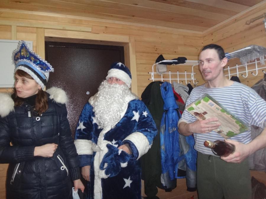 Сначала приехали за город, потом поднялись те самые 9 км с костюмами и подарками, отшучиваясь от спускающегося вниз народа. Напугали охранника на кордоне «Лалетино», который уже спать собирался и ворота закрыл. Все это без приглашения, просто услышав от кого-то, что Тимофей на Столбах с ночевой где-то будет. Спросили на Лалетино, спросили на Перевале, спросили на Нарыме, забрели на метеостанцию, спросили у почвенного термометра: 0), нашли единственную натоптанную тропу и притопали прямиком на огонёк. Все для того, что поздравить, одарить, и посидеть с нами буквально полчасика («ребенок дома, мы на минутку») и отчалить в ночь несмотря на уговоры.