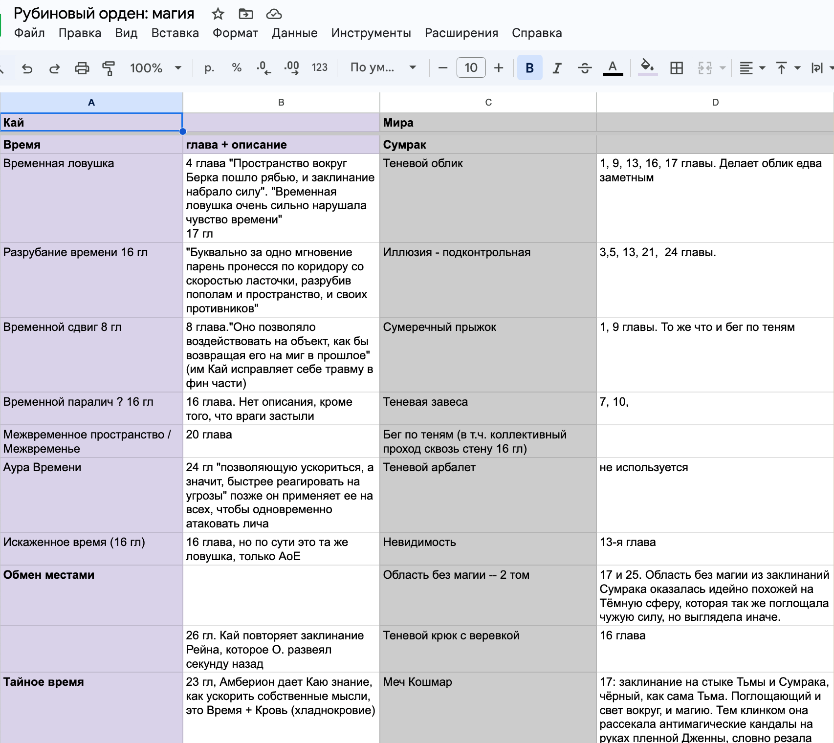 Также выписали, какими заклинаниями должны овладеть герои по мере продвижения по сюжету и после стали собирать в таблицу, где упоминается описание, как работает та или иная магия, чтобы не разойтись в этих описаниях в разных местах и книгах: