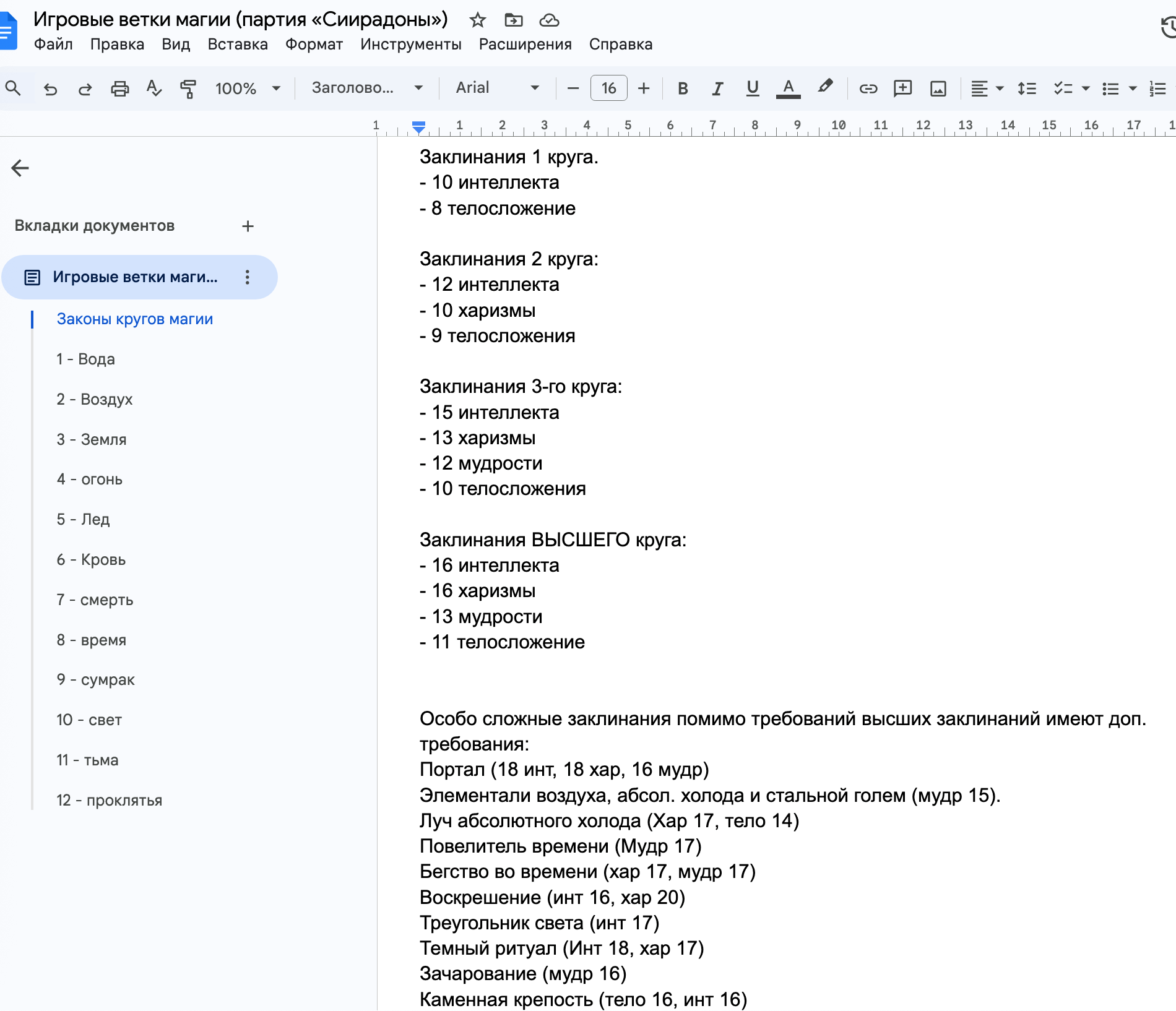 В итоге от огромного дока про все ветки магии и игровые требования...