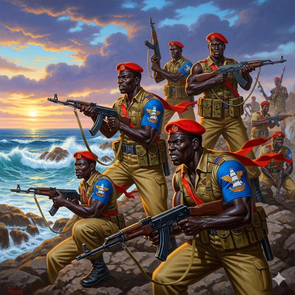 Массово произведенная, простая униформа цвета хаки или грубый тропический камуфляж. Главный отличительный элемент — ярко-красный или синий пояс-кушак и берет того же цвета, чтобы их можно было легко отличить от повстанцев. Снаряжение функциональное, но дешевое.