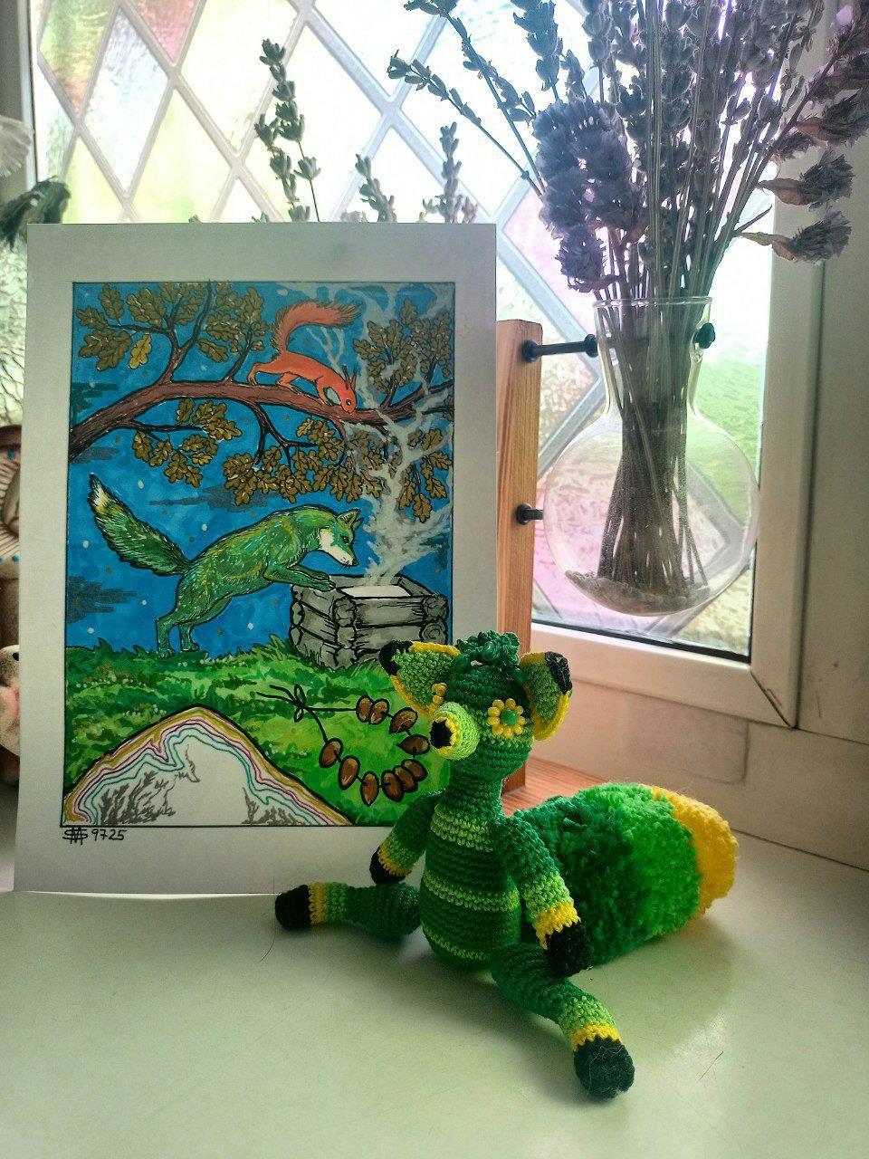 Например, от Marika Stanovoi приехал ко мне зелёный лис, герой одного из рассказов моего прошлого Райтобря. И картинка. И карточки. Всё красивое :З