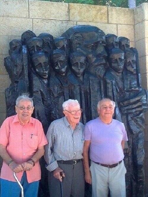 На фото - бывшие воспитанники Дома сирот на церемонии памяти Януша Корчака в мемориале Яд ва-Шем в августе 2012 года. Ицхак Бельфер справа.
