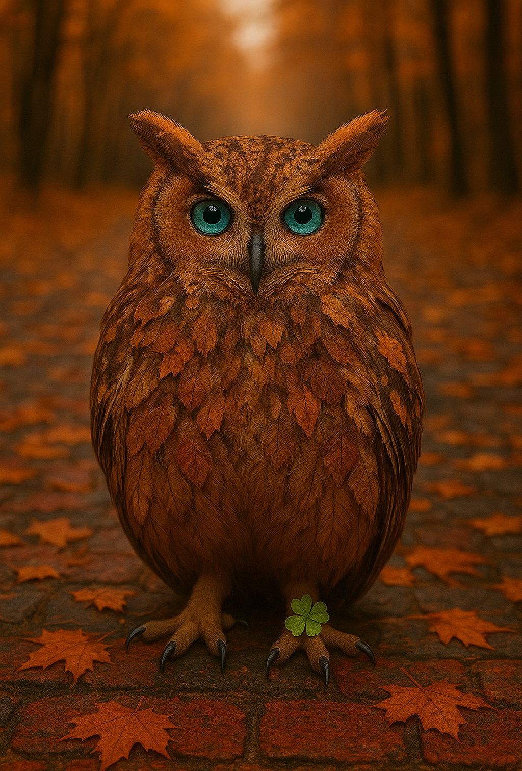 Перья, словно листья из деревьев, украшали эту сову. Ярко-бирюзовые глаза-фары не могли не удивить героя.