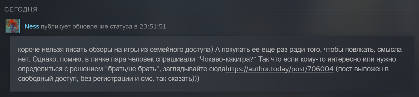 Поскольку у меня наконец дошли руки написать отзыв на эту игру, по традиции публикую ревью тут. Учитывая, что я играла в игру из семейной библиотеки, это, в целом, сейчас единственная опция, ибо: