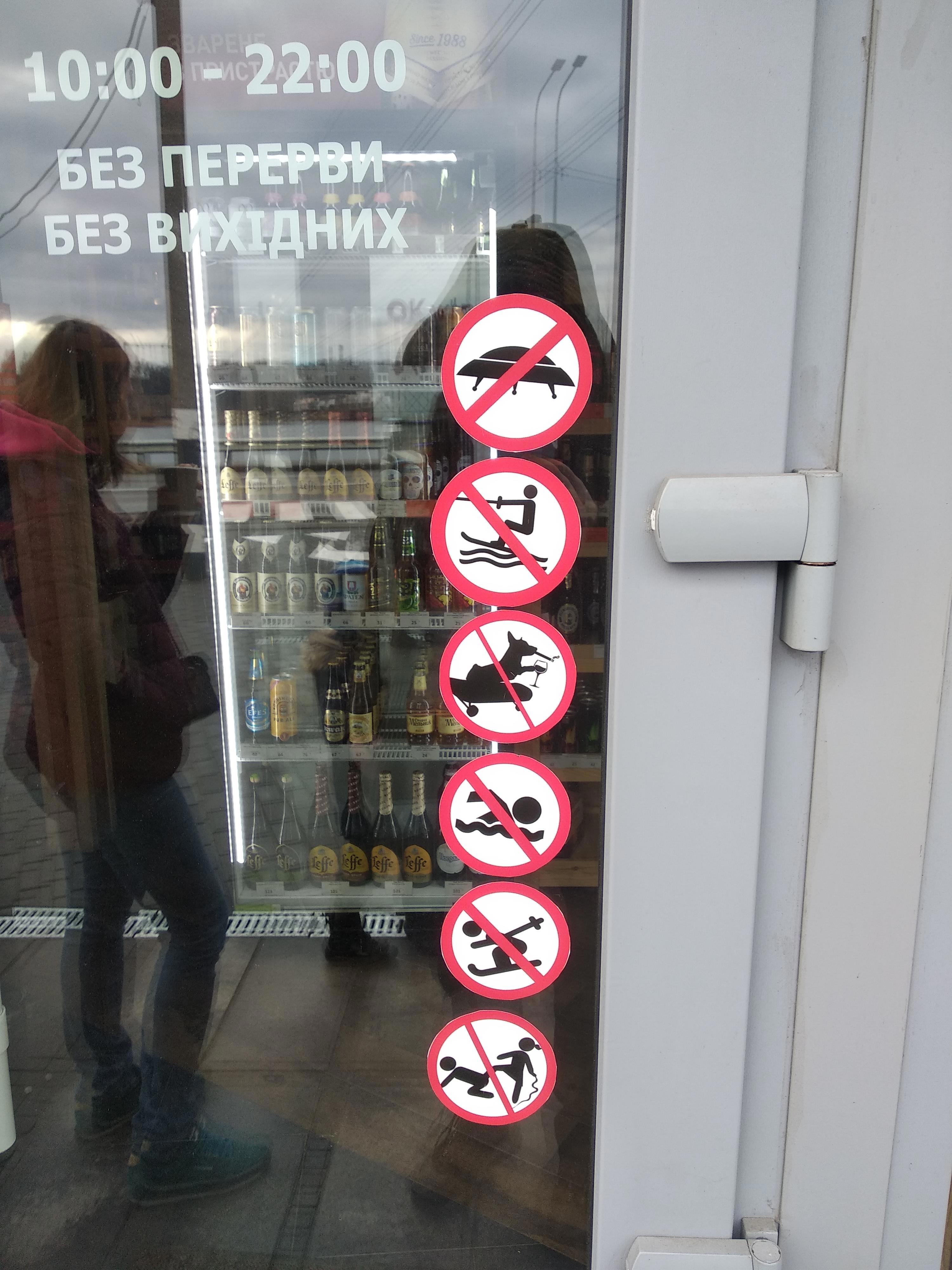 Смешные стикеры при входе в винный магазин