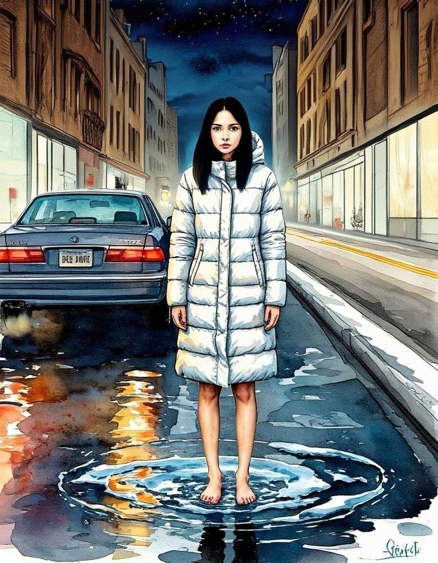 Обычный день. Обычный маршрут. Но.. кто это на дороге? Девушка? Да ещё и босиком?! На улице мороз, а она стоит в одном пуховике, даже вон, кончик носа уж отмёрз.. Не могу я мимо проехать. Надеюсь она не городская сумасшедшая...