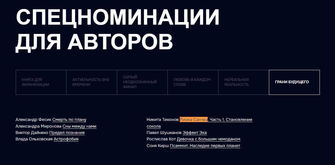 Автор: Никита ТихоновУвидел у Клима Руднева пост в блоге про конкурсы и вспомнил, что не поделился радостью. Еще летом решил принять участие в ежегодной премии Литрес "Электронная буква" с моей Рионой. И знаете что? Ее не просто взяли, она попала в лонг-лист сразу в двух номинациях - в главной и спецноминации "Грани будущего".