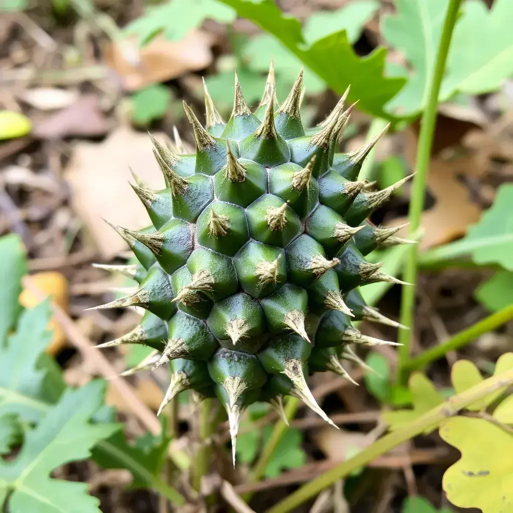 На своем придомовом участке я обнаружил странное растение, которое сразу привлекло мое внимание. Его плоды были покрыты острыми шипами, и я не мог не заметить, как они угрожающе торчали из земли. Каждый шаг по этому участку становился настоящим испытанием: шипы впивались в подошву, заставляя меня прыгать и вертеться, как будто я попал в ловушку. Я назвал это растение "чужой", ведь оно казалось пришельцем среди привычных мне цветов и трав.