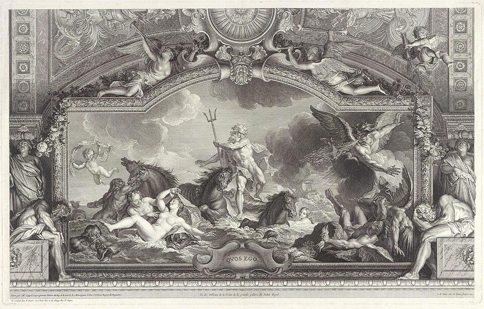 Бернар Пикар. Нептун успокаивает бурю. Офорт по картине Антуана Куапеля.