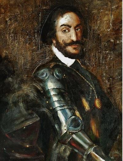 на высоком гнедом коне сидел человек в золоченной кирасе и шлеме с черным плюмажем. Длинное породистое лицо, бледно-голубые глаза.
