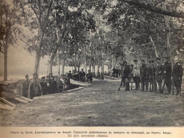 119 лет назад, в семь часов жаркого вечера 02 июля 1900 года (15 июля — по новому стилю) для жителей приграничного Благовещенска закончилась мирная жизнь, и начались фронтовые будни осажденного города. Прогремевший пушечный выстрел с китайского берега Амура, а затем такой же второй, третий, четвертый… затрещавшие винтовочные выстрелы заставили благовещенскую публику, до этого беспечно совершавшую променад по набережной города, спешно покинуть ее. Толпы людей бросились с открытой набережной под защиту домов вдоль нее. В это время из этих же домов уже выскакивали наскоро одетые жильцы и бежали вглубь города. Ужас происходящего был в совершенной неожиданности случившегося.