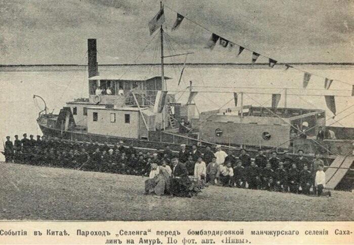 Утром 01 июля (14 по новому стилю) 1900 года российский гражданский пароход "Михаил" при прохождении по реке Амур мимо деревни Сы-дао-гоу (недалеко от Айгуна), был обстрелян из окопов китайского берега из ружей. Далее выстрелы прекратились и над китайскими окопами показался белый парламентский флаг. "Михаил" остановился и спустил шлюпку для выяснения дела. Шлюпка вернулась на пароход с тремя китайскими нойонами (чиновниками). Нойоны передали капитану, что ими получен императорский указ, запрещающий плавание по Амуру русским судам. Напомню по договору Китай заканчивался там, где начиналась вода. Заметив на борту судна военный груз, китайцы приказали отдать его. Во время переговоров к месту события подошел военный пароход "Селенга", на борту которого плыл в Благовещенск пограничный комиссар области, подполковник генерального штаба Виктор Брунович Кольшмидт. Заметив "Селенгу", пароход "Михаил" подал сигнал остановиться. После доклада капитана, пограничный комиссар велел вежливо выпроводить китайских нойонов, пароходам немедленно сняться с якорей и продолжать путь вверх по реке. Но как только "Михаил" и "Селенга" снялись с якорей, китайцы дали по ним залп и затем уже не переставали стрелять, осыпая наши пароходы градом пуль и картечи. В.Б.Кольшмидт приказал бывшим с ним казакам - отстреливаться. После получасовой перестрелки (против течения шли медленно) пять русских были ранены (два казака, боцман, лоцман и сам пограничный комиссар). Русские пароходы, бросив четыре пустых баржи на мели - ушли.