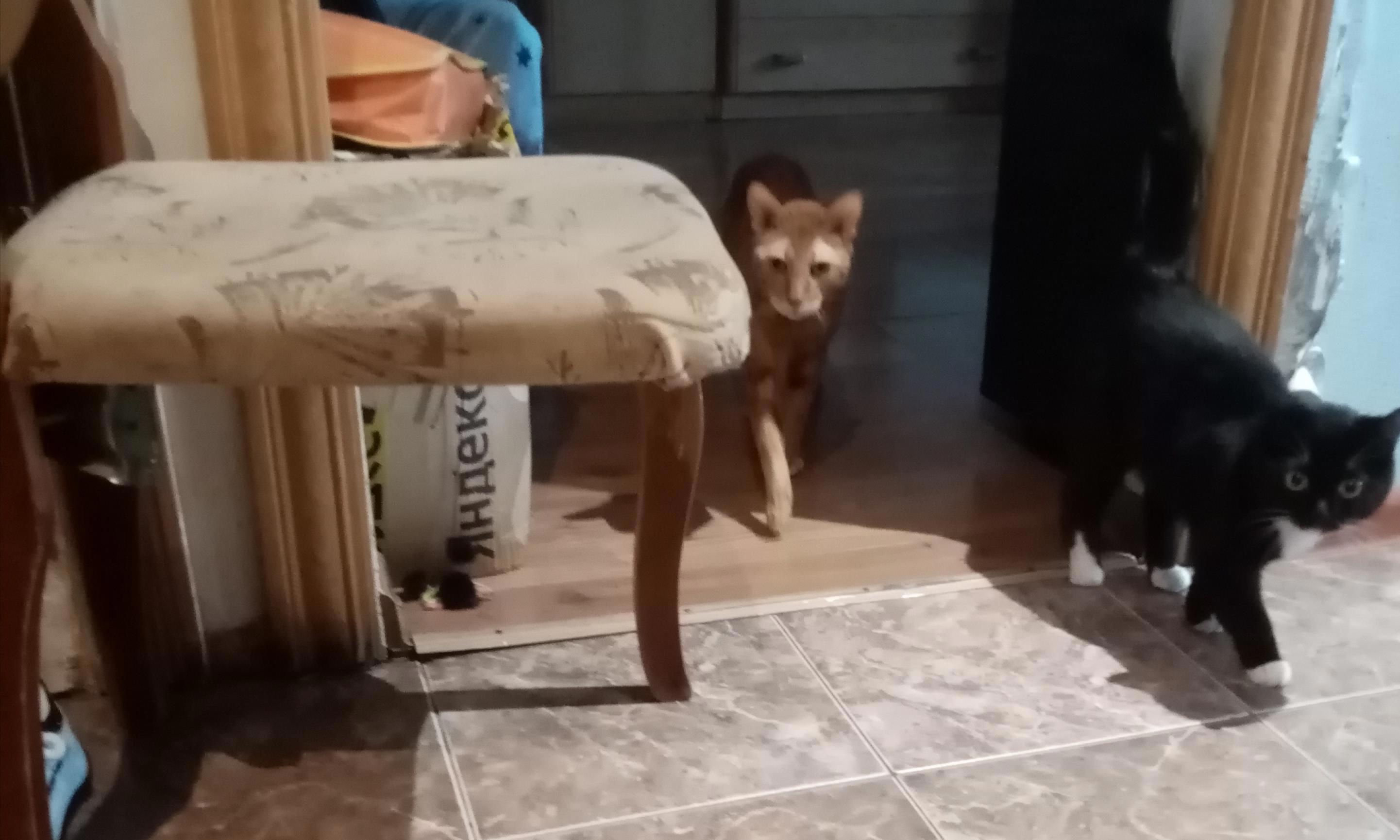 Вот так приходишь домой, а там!.. В прихожей кошки сломанный стул чинят